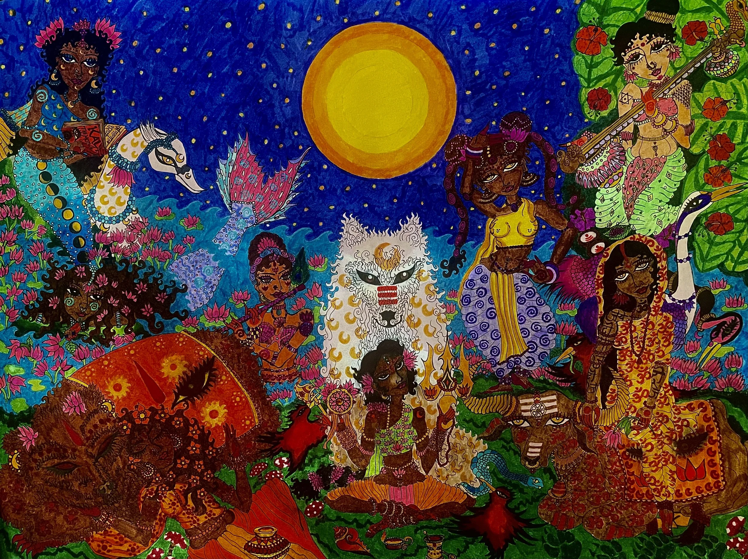 The original piece was drawn entirely by hand on red wine stained paper infused with rose, lavender, and homemade chai, this piece opens the emotional portal that will eventually become the mythos of Lyla & The Cosmic Entity. The first piece in the collection, this is a staple in a building art collection for anyone interested in laissez-faire art.